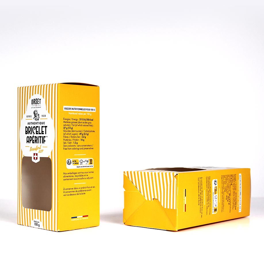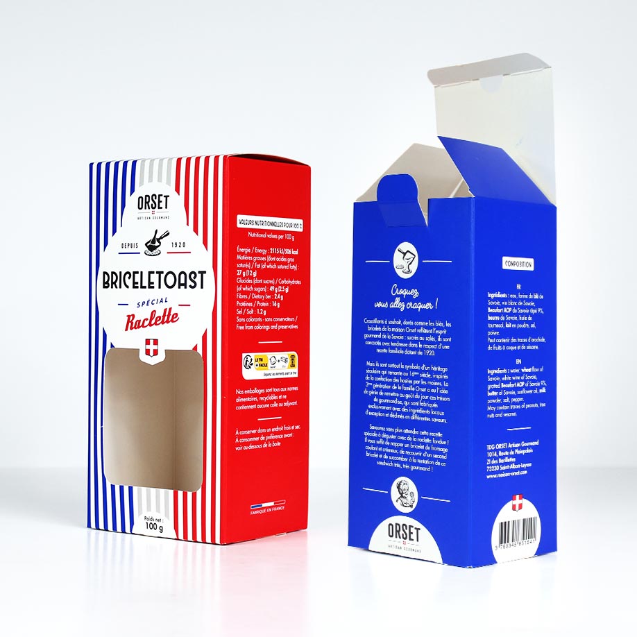 Nombre de visuelsVous avez plusieurs visuels ? Précisez le nombre de designs différents à imprimer . Type de cartonC’est le moment de choisir votre carton ! Sélectionnez la qualité et l’épaisseur qui correspondent à votre projet. ImpressionVous avez la liberté de personnaliser votre packaging selon vos envies : sans impression, avec une impression couleur ou noire, à l’intérieur, à l’extérieur ou les deux. FinitionsSublimez votre packaging avec nos finitions premium : pelliculage, vernis sélectif, dorure ou gaufrage. Pour les teintes foncées, nous recommandons vivement le pelliculage mat anti-rayures afin de préserver un rendu impeccable. Fenêtre de découpeOptez pour une fenêtre découpée, idéale pour mettre en valeur votre contenu. Chaque emballage peut accueillir une seule ouverture, déclinée dans une forme simple (carré, rond ou rectangle) Options graphiques et PAOSécurisez votre design avec nos services graphiques : BAT, vérification ou mise en page professionnelle. Type de découpe- Pour un prototype (quantité 1), la découpe laser est utilisée. Délai de fabrication