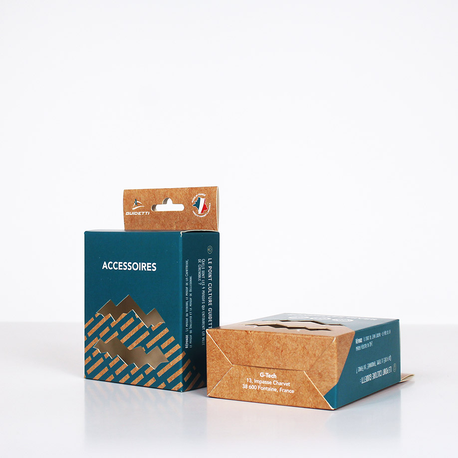 Ces boîtes, avec leurs pattes rentrantes, permettent une personnalisation sur les 6 faces de l'emballage : couleurs, vernis, pelliculage, et marquage.
