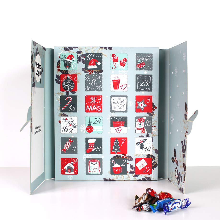 Séduisez vos clients en fin d’année avec notre Calendrier de l’Avent classique personnalisable. Quantité minimum : 50 exemplaires. Version horizontale ou verticale