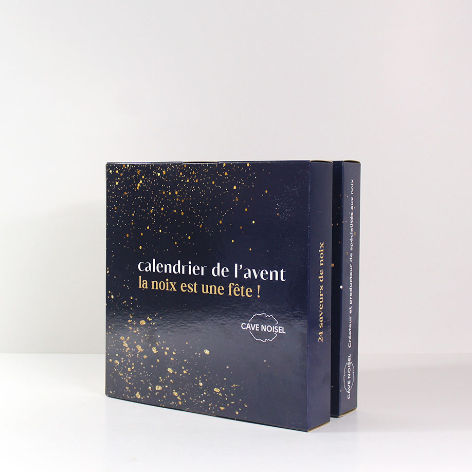 FormatChoisissez les dimensions de votre produit QuantitéIndiquez ici la quantité totale de votre commande. Si vous laissez une quantité 1, il s'agit d'une commande d'un prototype livré sous 3 jours ouvrés (imprimé ou non). Nombre de visuelsVous avez plusieurs visuels ? Précisez le nombre de designs différents à imprimer . Type de cartonC’est le moment de choisir votre carton ! Sélectionnez la qualité et l’épaisseur qui correspondent à votre projet. ImpressionVous avez la liberté de personnaliser votre packaging selon vos envies : sans impression, avec une impression couleur ou noire, à l’intérieur, à l’extérieur ou les deux. FinitionsSublimez votre packaging avec nos finitions premium : pelliculage, vernis sélectif, dorure ou gaufrage. Pour les teintes foncées, nous recommandons vivement le pelliculage mat anti-rayures afin de préserver un rendu impeccable. RemplissageNous vous proposons un assortiement de chocolat, café ou thé pour remplir vos calendriers Découpe LaserOptions graphiques et PAOSécurisez votre design avec nos services graphiques : BAT, vérification ou mise en page professionnelle. Délai de fabrication